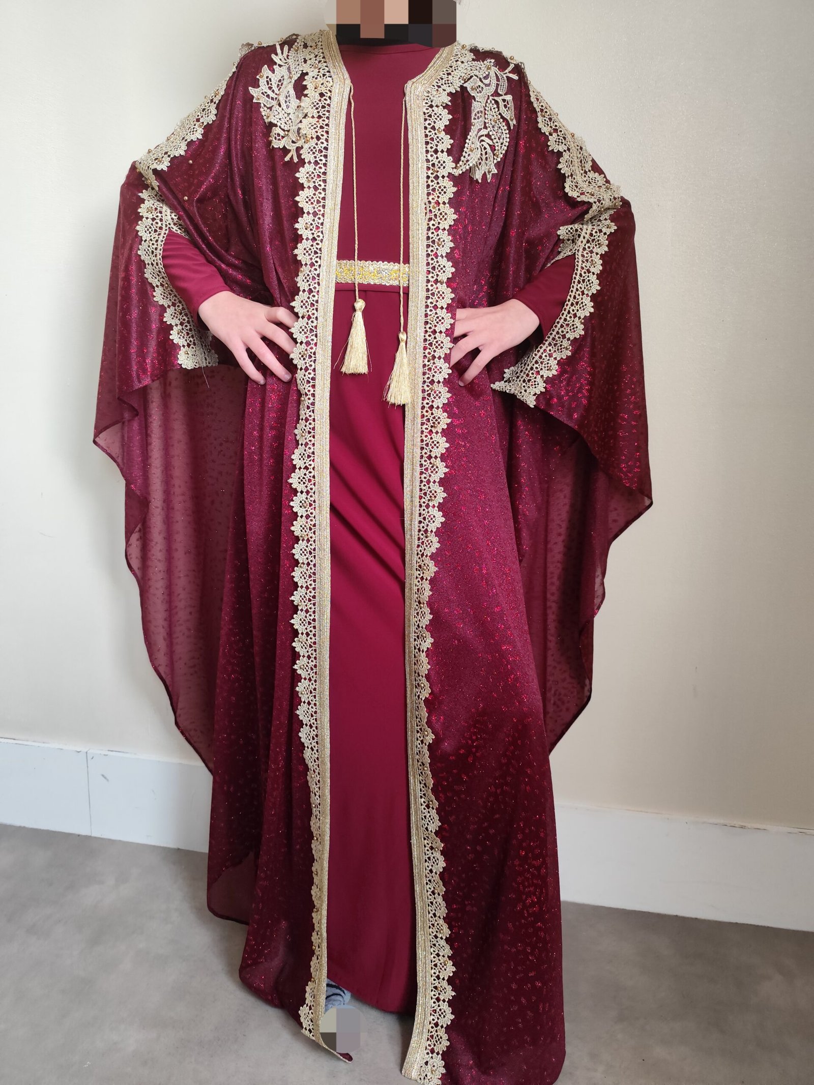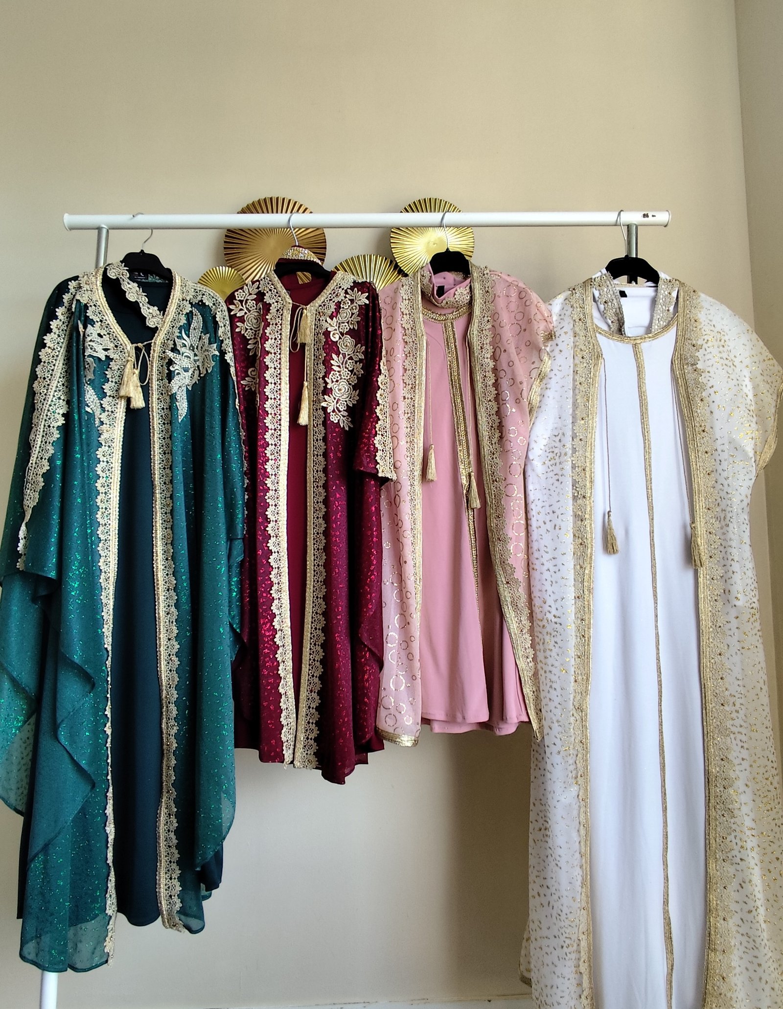 Craquez pour cette sublime robe accompagnée de sa cape assortie, une tenue raffinée qui allie tradition et modernité. Parfaite pour les petites filles de 4 à 14 ans, elle est idéale pour les fêtes, mariages, l’Aïd ou toute occasion spéciale.